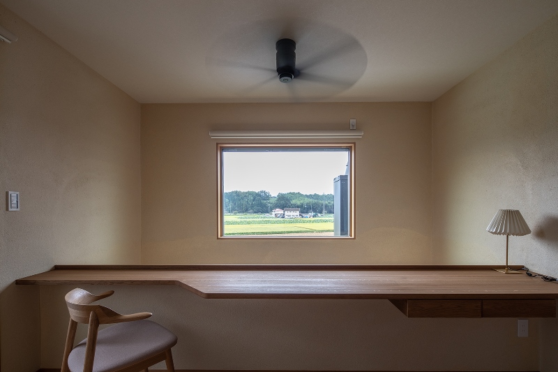 2階ホールから見た田園風景。