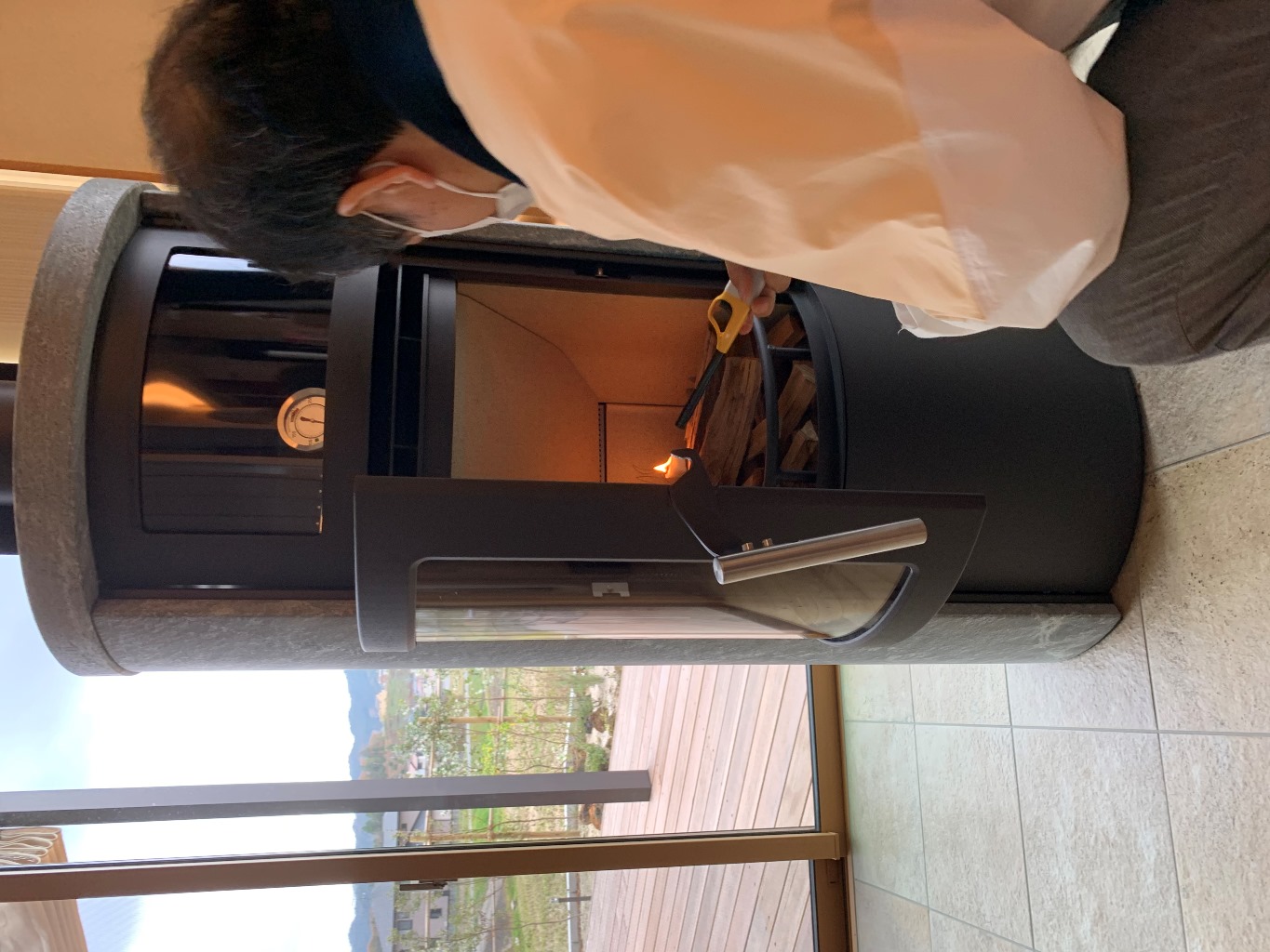 薪ストーブの試運転をし、使い方の説明を受けました。