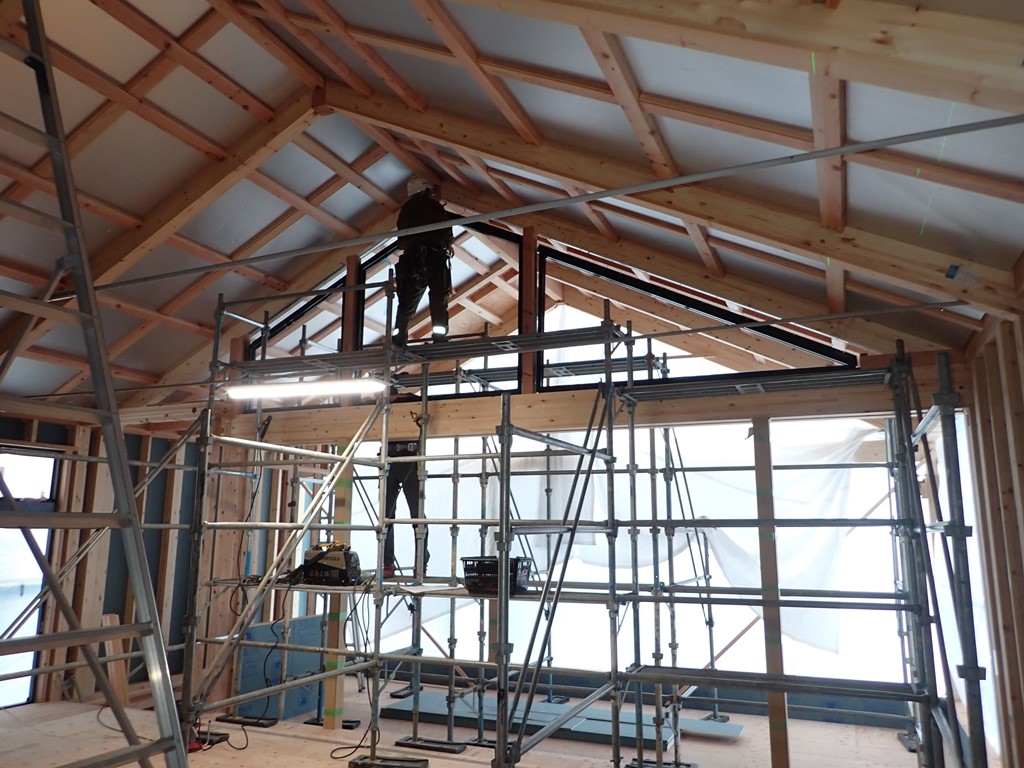 上棟から3週間、サッシの取付が始まりました。
