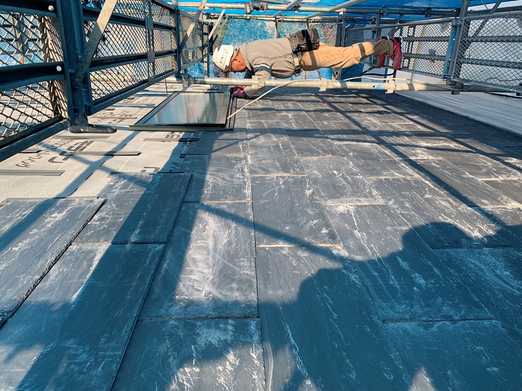 一枚一枚張り上げる天然スレート。