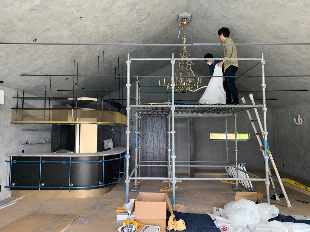 シャンデリアは専門の業者さんにより、