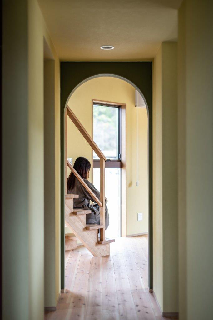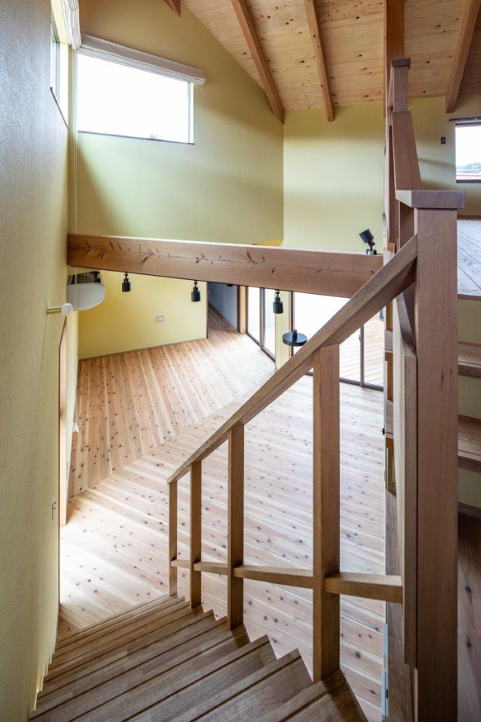 ぐるぐる回遊できる間取りは、どこにいても家族の気配やつながりを感じ、リビングから2階を見上げるととてもワクワクした気持ちになります。